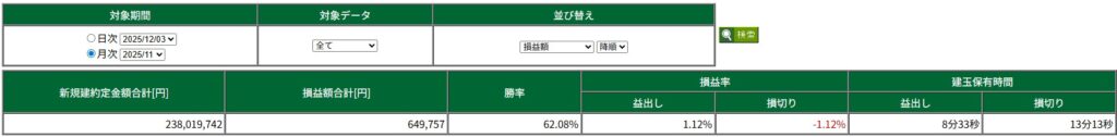・今月も有難うございました。今年もあと一ヶ月ですが、来月も配信よろしくお願いします。11月は難しいと思いながらやってたけど、なんだかんだで過去最高の月間利益でした