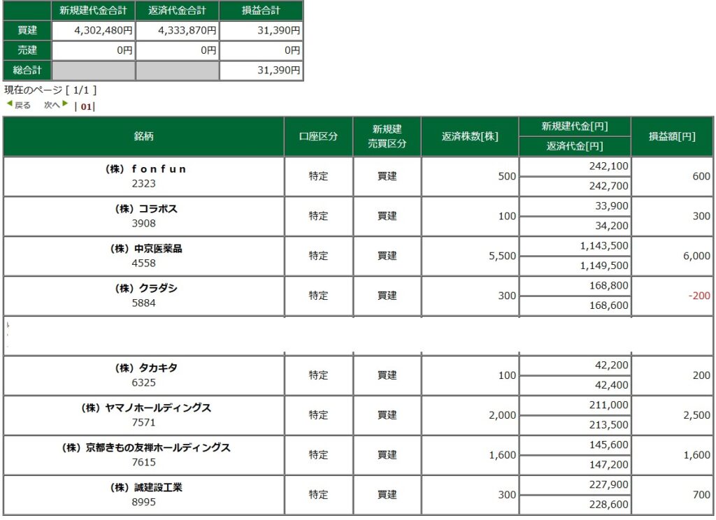 デイトレ戦績