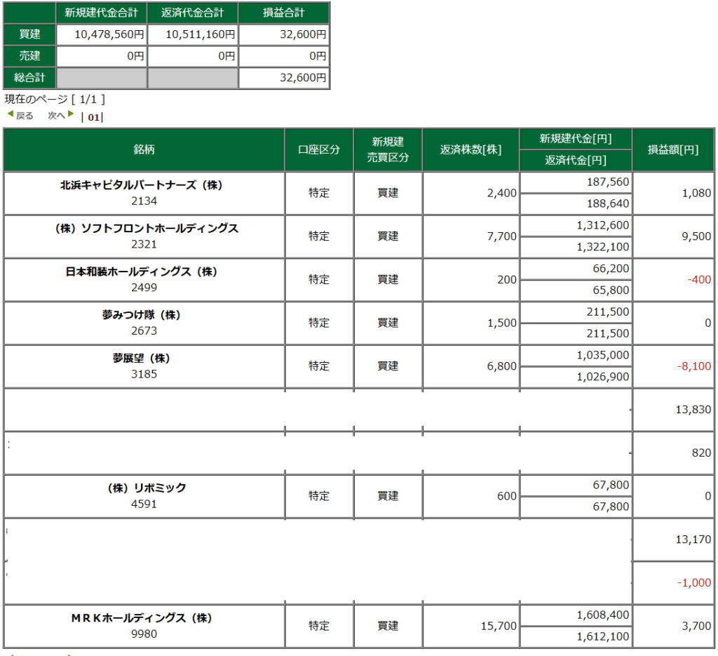 SBIの方で利益でてるけど、デイトレと線引きが難しい。