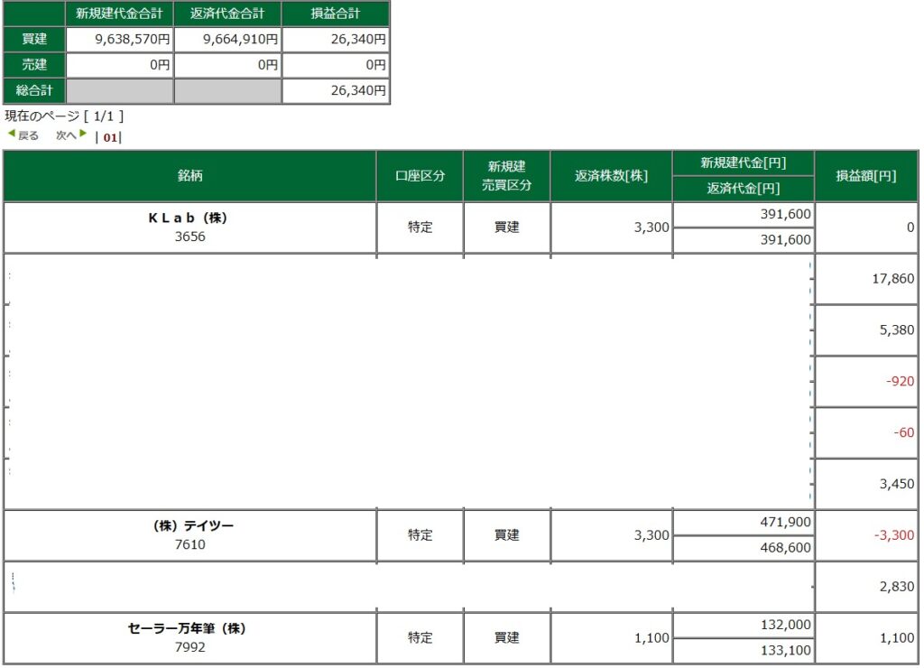 デイトレ戦績