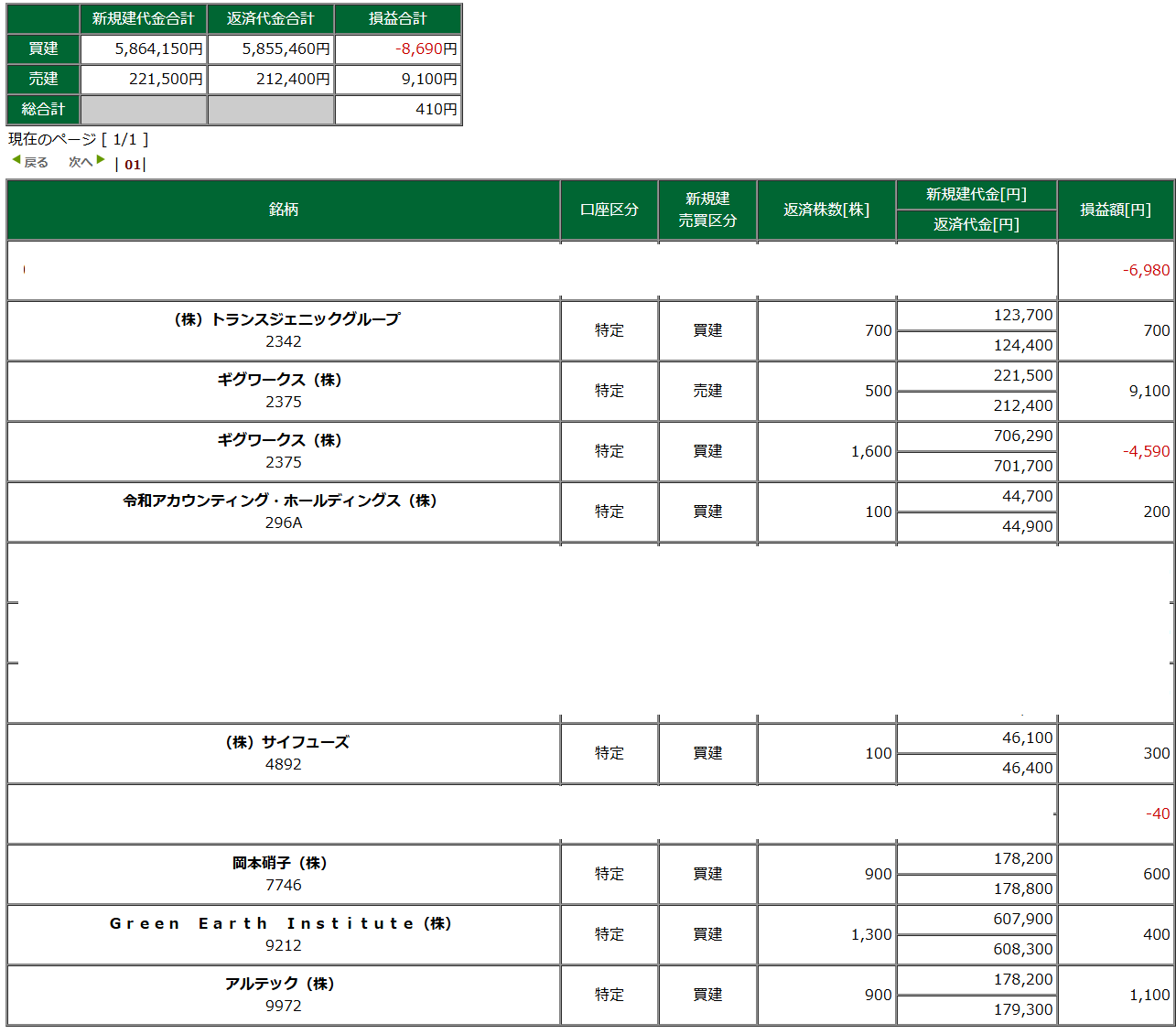 デイトレ結果