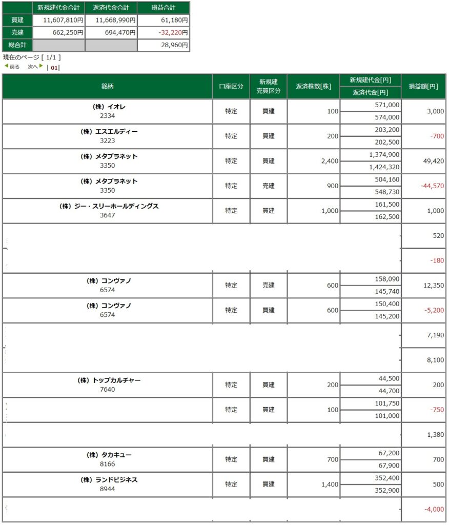 デイトレ戦績