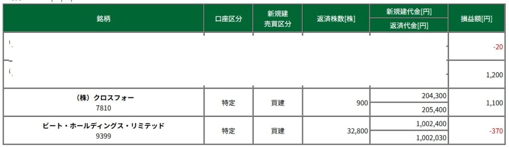 デイトレ戦績