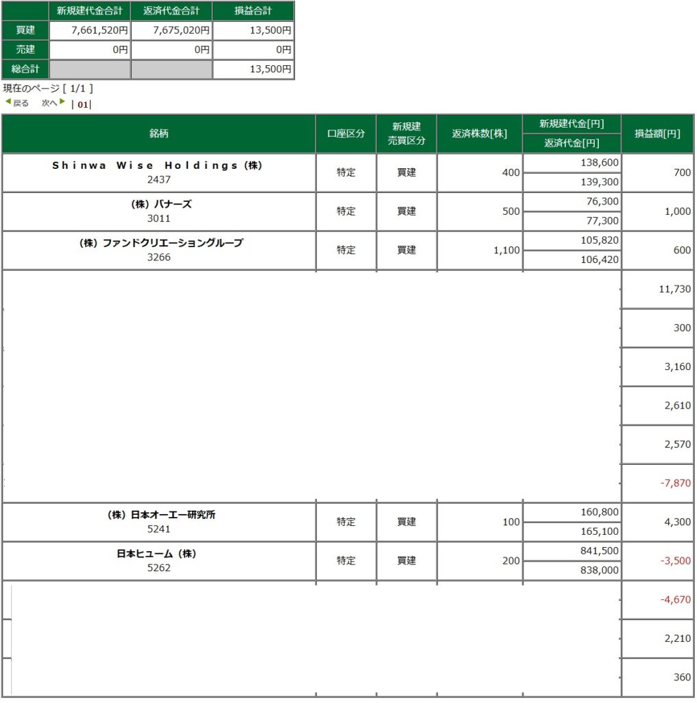 デイトレ戦績